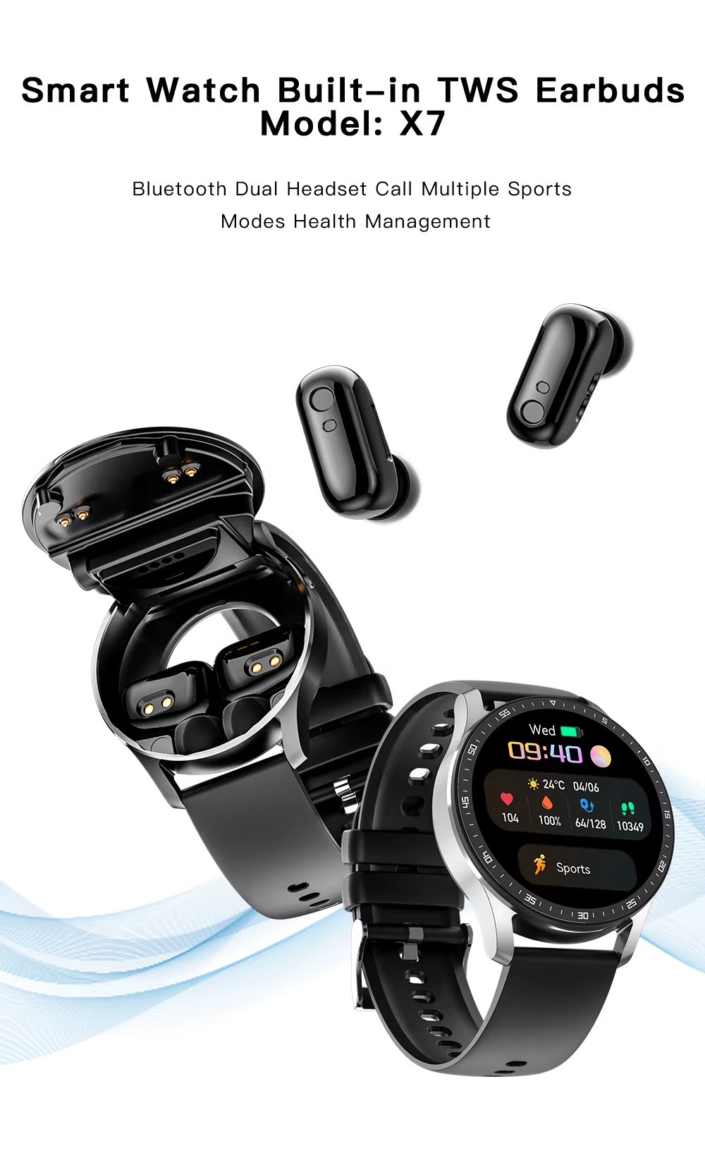 X7 2 in 1 Smart Watch With Earbuds Smartwatch TWS Bluetooth Earphone